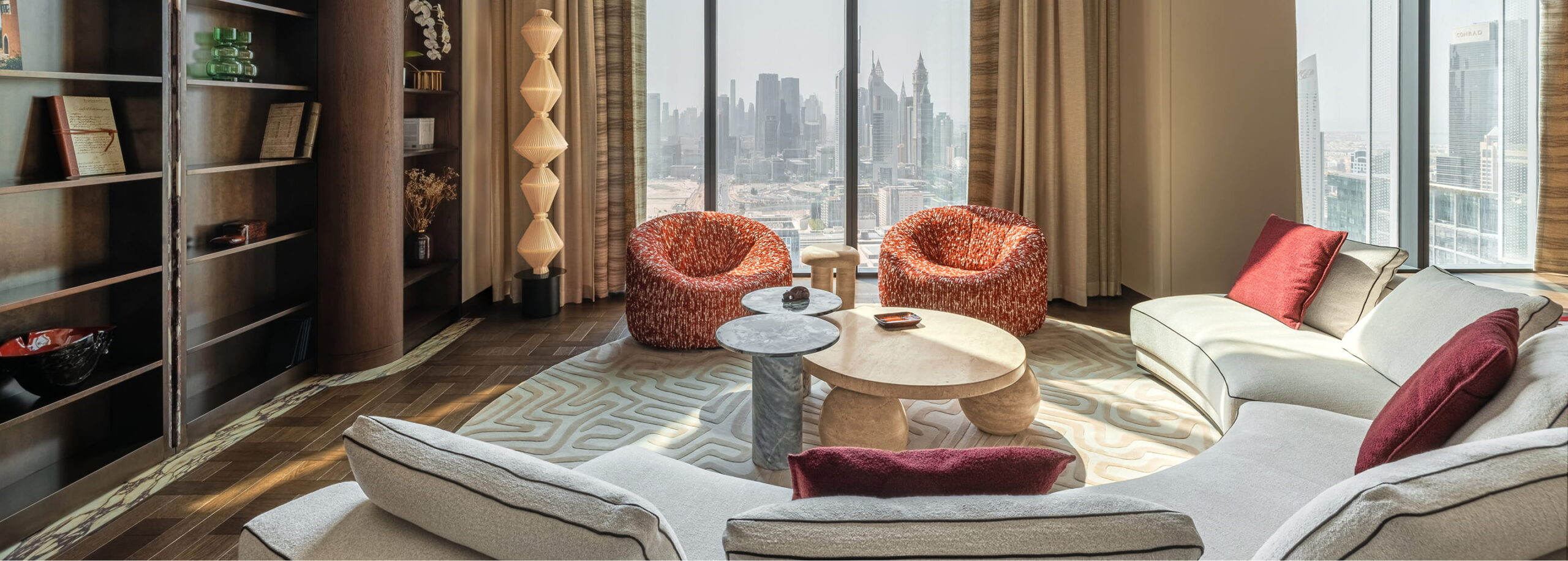 Nestled in One Za'abeel Tower, this apartment reveals the power of thoughtful fitout, customized joinery, and bespoke elements creating a space that welcomes you like home. The exquisite material combinations and sophisticated craftmanship elevate every detail.